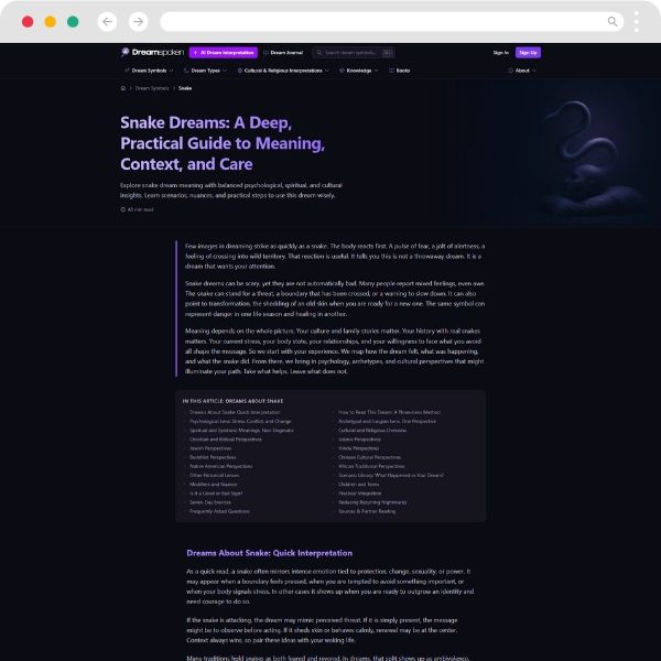 Dreamspoken is an online platform dedicated to exploring dreams, how they work, and what they might mean. It brings together educational content about dream psychology, sleep science, and cultural approaches to dreaming, along with a large library of common dream symbols and typical dream scenarios. The focus is on helping users understand dreams as personal and psychological experiences rather than fixed predictions. The site also offers optional tools to support your dream journey: an AI‑based dream interpretation feature that analyzes written dream descriptions and generates insights, and a private dream journal where users can record, organize, and reflect on their dreams over time.