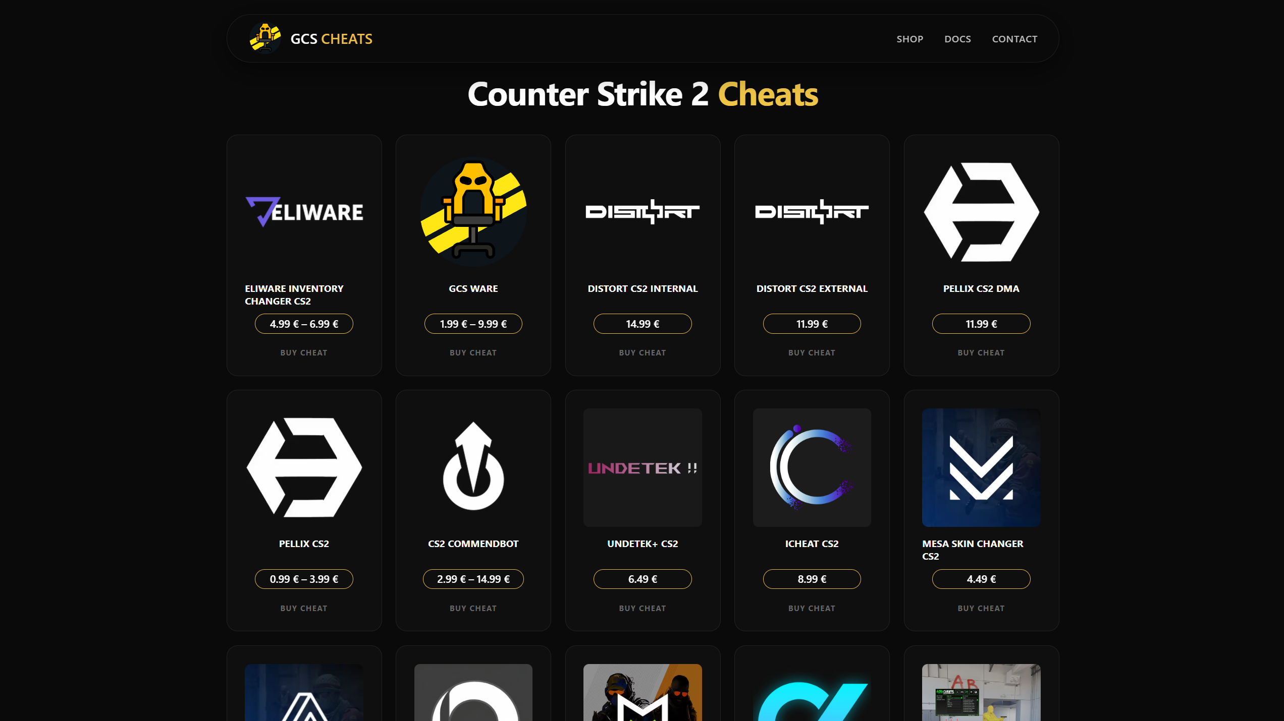 GCS Cheats is an online store that sells premium game cheats, hacks, and mod menus for popular PC multiplayer titles. The site offers tools such as aimbots, wallhacks, ESP (enemy location tracking), triggerbots, radar hacks, no recoil, no spread, skin changers, and external/internal cheat loaders. It targets competitive games like CS2, Valorant, Fortnite, Rust, Escape from Tarkov, and GTA V, marketing its products as “undetected,” private cheats, secure loaders, and anti-cheat bypass software. Users purchase a license key or subscription, download the cheat client, and run it alongside the game.