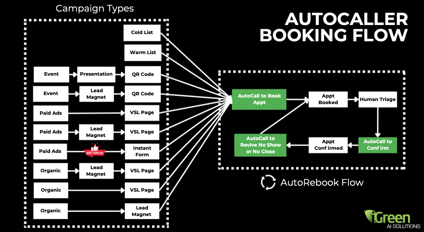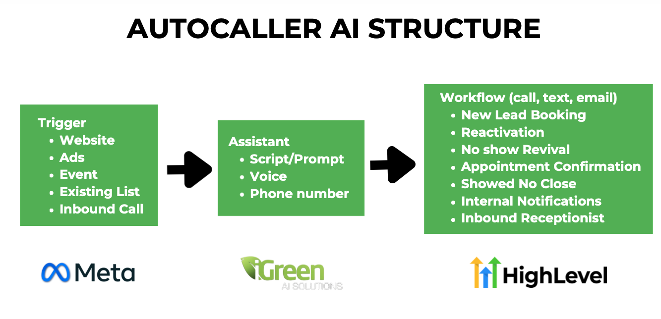 iGreen AI's AutoCaller is an AI sales agent that calls your leads back in under 60 seconds, qualifies them, handles objections, and books appointments directly to your calendar — 24/7, with no human intervention required. Trained on 3+ million real sales calls.