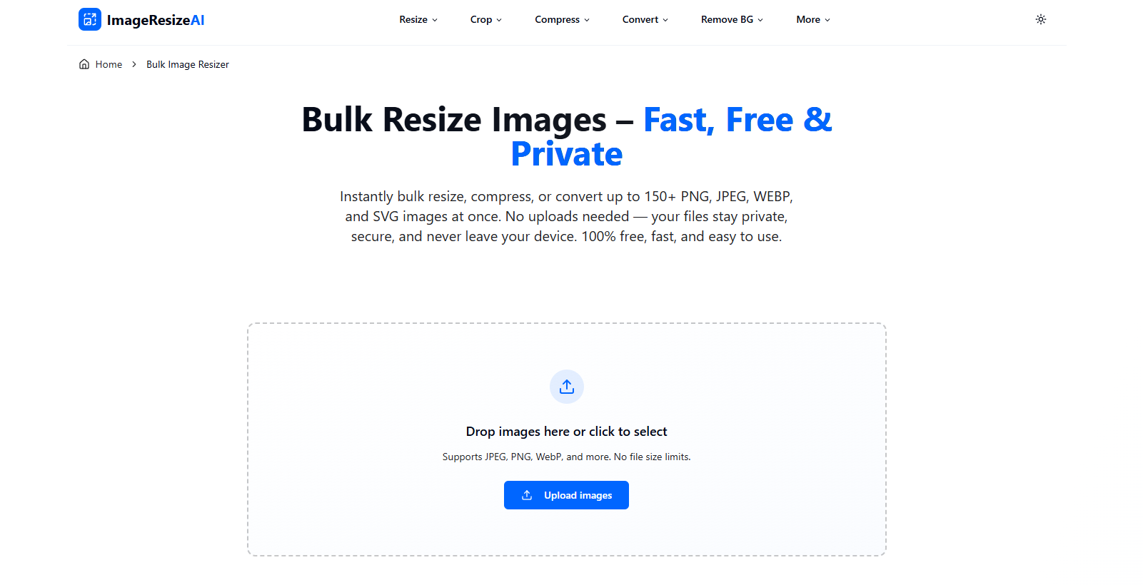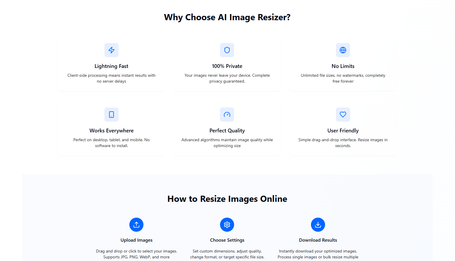 Image Resize AI : The Privacy-First AI Image Resizer, 100% Client-Side Image Toolkit. Welcome to ImageResizeAI.com, the ultimate destination for high-performance image optimization where your privacy is the priority. Most online image tools claim to be "free," but they pay for their servers by saving your private images to their databases or tracking your data. Privacy is not a feature; it is a right !!! That is why I built this tool. ImageResizeAI uses advanced Client-Side Processing. This means when you "upload" an image here, it never actually leaves your computer.