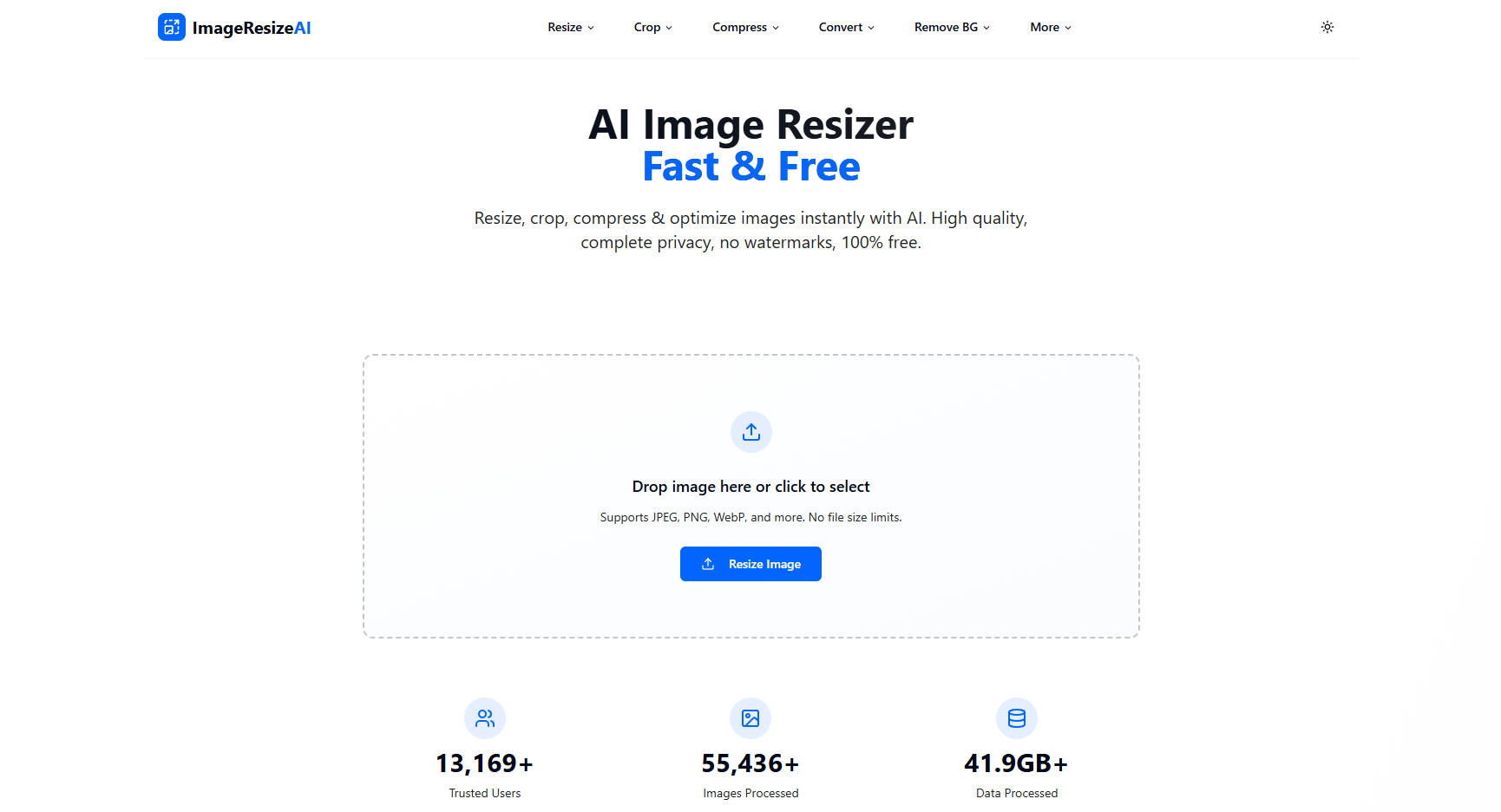 AI Image Resizer - Resize, Crop, Compress, Convert and Remove Bg. Fast, Free & Secure.
