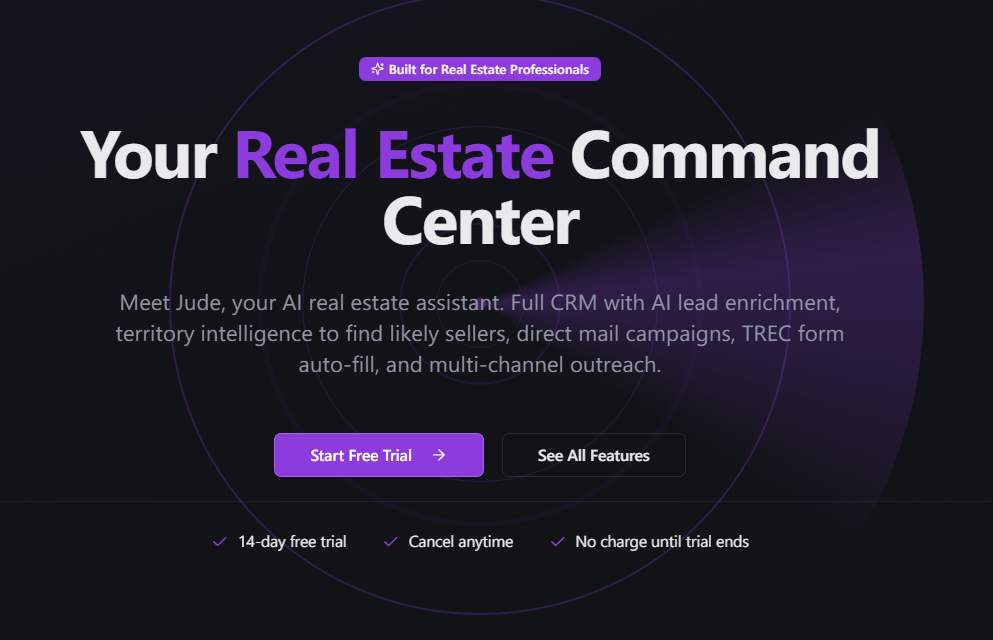 Jude AI is an AI-first platform for real estate agents seeking to win listings faster and smarter. It replaces scattered CRMs, spreadsheets, and generic AI apps. Agents use Jude to identify likely sellers, visualize their farm, generate postcards and listing marketing, and keep all outreach organized from a single, intuitive platform.