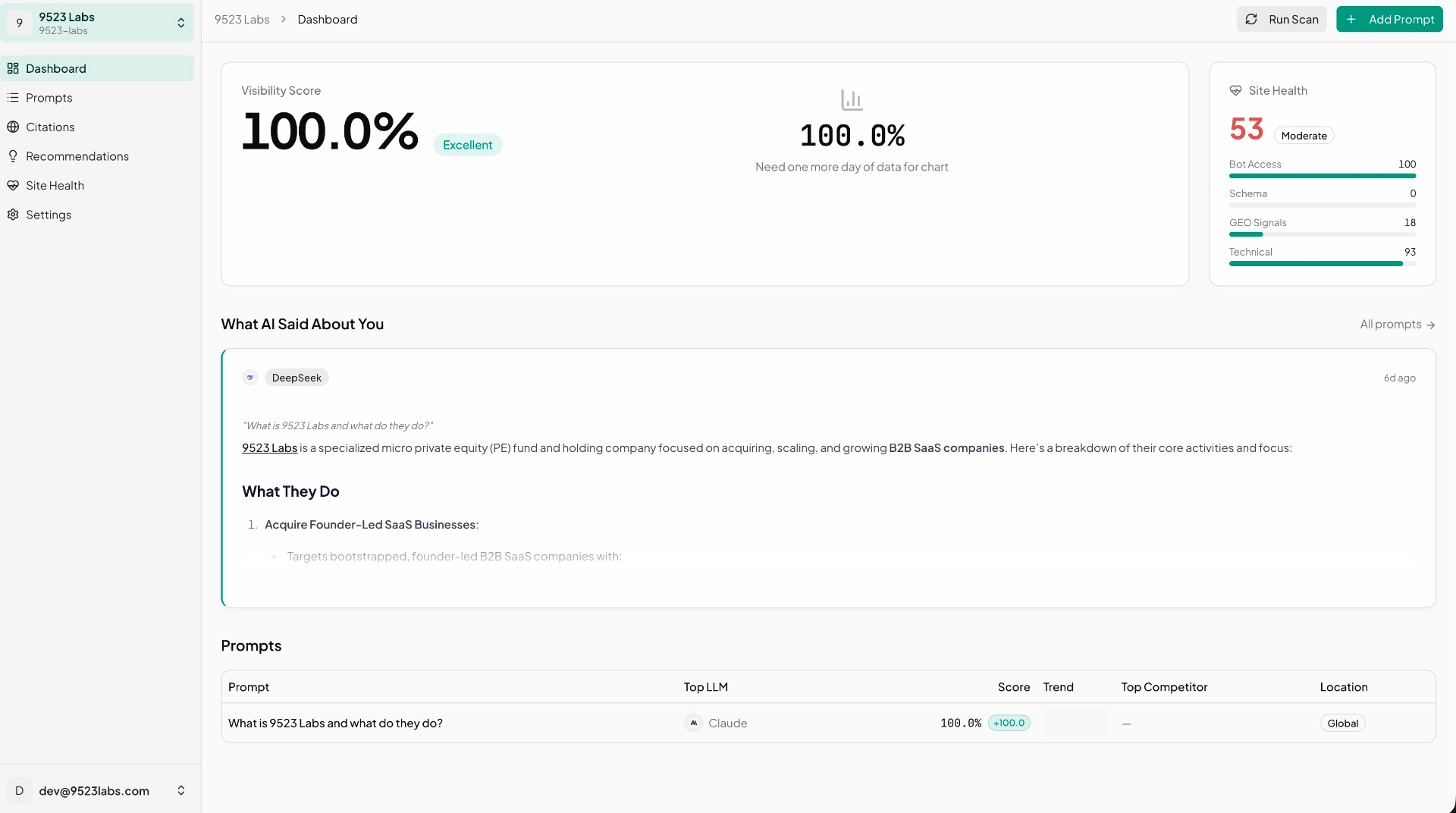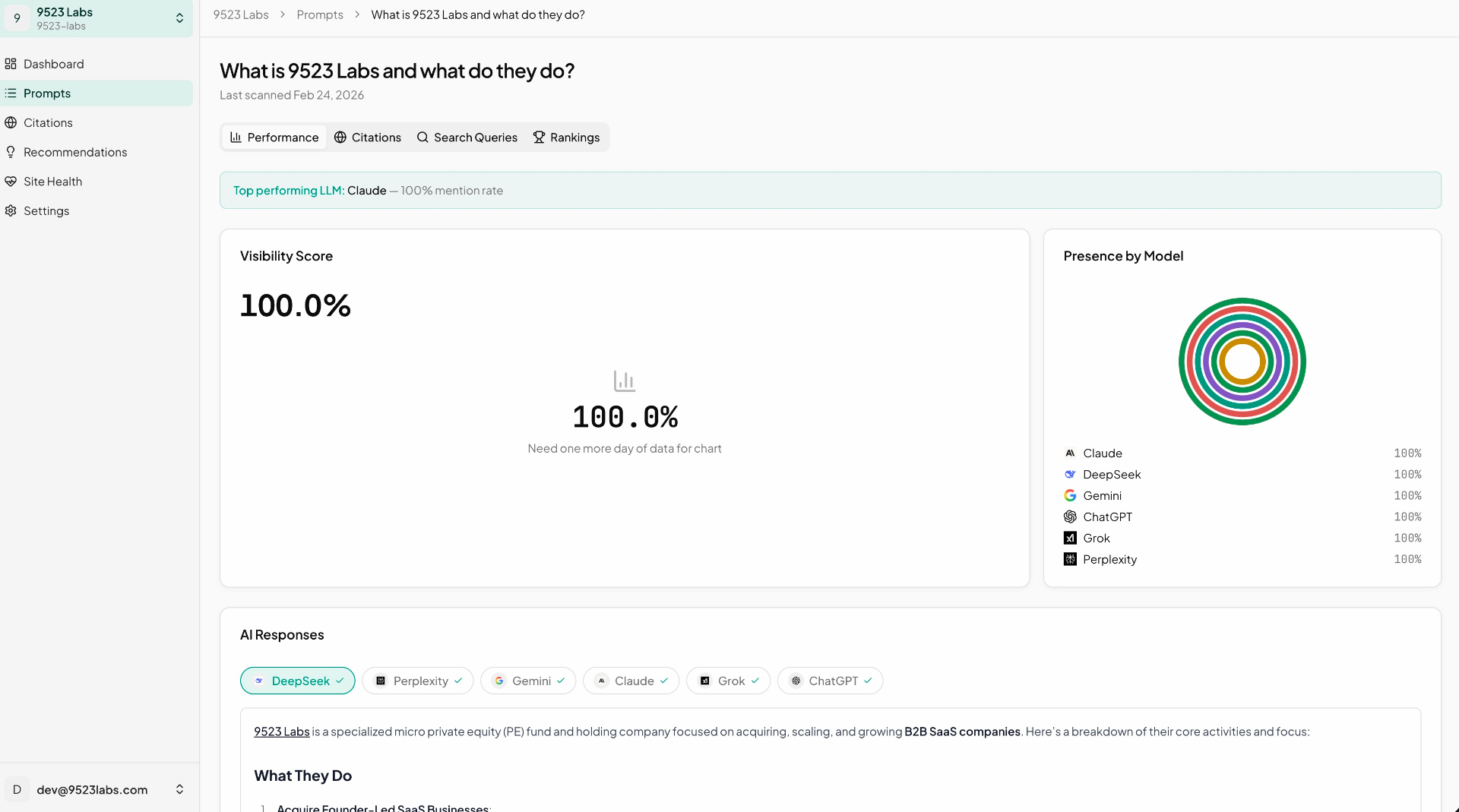 Prompt Metrics — AI Visibility Monitoring for Brands Tagline: Know when AI talks about you. Description: Track and optimize how often your brand gets mentioned by AI assistants like ChatGPT, Claude, Gemini, Grok, and Perplexity. Monitor visibility scores, analyze competitor mentions, see which sources AI cites, and get actionable insights to improve your presence in AI search results. AI is becoming the new front page of the internet. When someone asks ChatGPT "what's the best project management tool?" or tells Claude to "compare top CRM platforms" — is your brand in the answer? Most companies have no idea. Prompt Metrics gives you that answer across 6 major AI models, updated daily. How it works: Set up tracking prompts — the questions your customers ask AI about your industry. We query ChatGPT, Claude, Gemini, Grok, DeepSeek, and Perplexity with those prompts, then use LLM-powered extraction to detect brand mentions, competitor references, and source citations in every response. Your