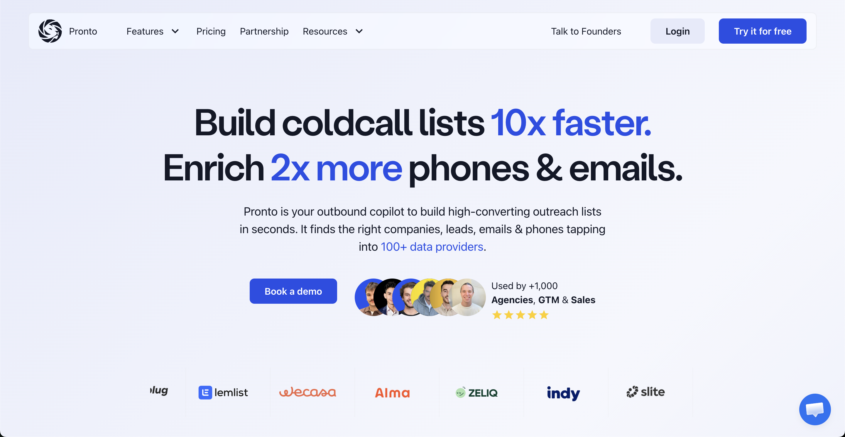 Pronto is your outbound copilot to build high-converting outreach lists in seconds. It finds the right companies, leads, emails & phones tapping into 100+ data providers.