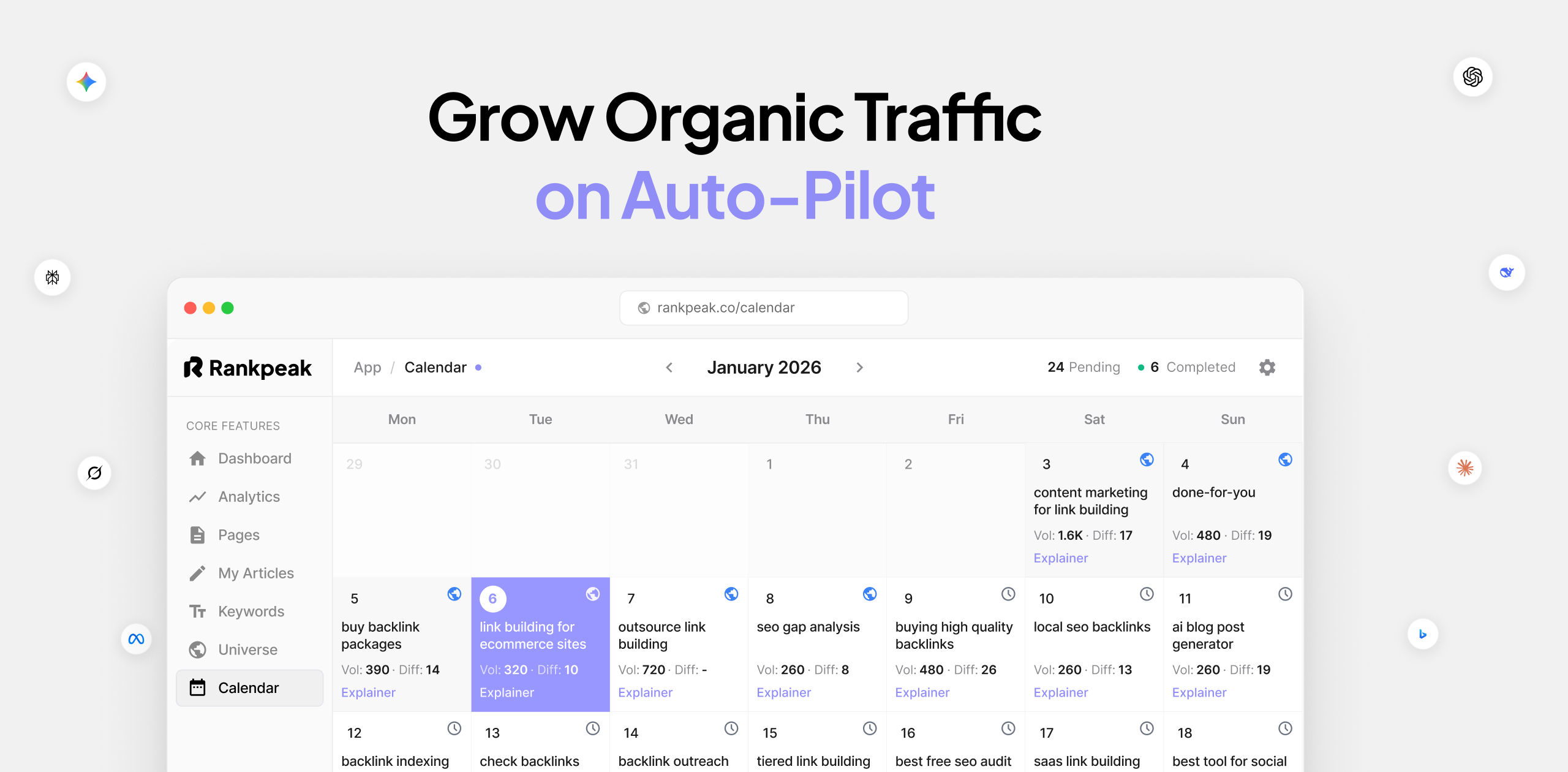 Grow Organic Traffic on Auto-Pilot with AI SEO Agents.