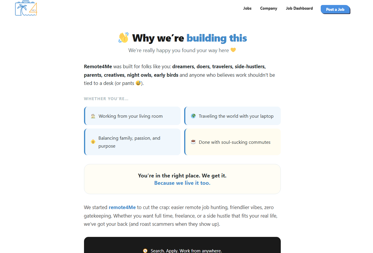 Remote4Me helps professionals find verified remote jobs and work-from-home opportunities across multiple industries. Explore global roles with no commute required.