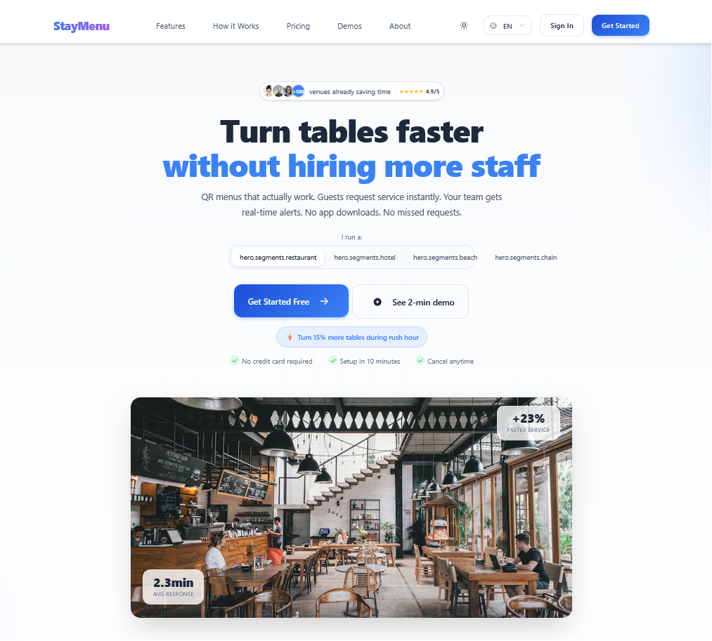StayMenu is a unified platform designed to turn every property into a high-efficiency hospitality business. It bridges the gap between the office, the property, and the guest's smartphone through three specialized experiences: For Property Managers (The Remote Control): Take full command of your portfolio. Manage bookings, automate guest communication, set dynamic pricing, and monitor your entire operation from a single, beautiful dashboard. For Guests (The Digital Concierge): Offer your guests a premium, app-less experience. From a simple QR code scan, guests can check in, browse local recommendations, book extra services, and chat with your team—no downloads required. For Staff (The Operational Engine): Empower your cleaners and maintenance teams with real-time task lists. Know exactly when a room is "Guest Ready" the moment it’s finished, and handle maintenance requests before they become complaints. Zero-Friction Guest Experience