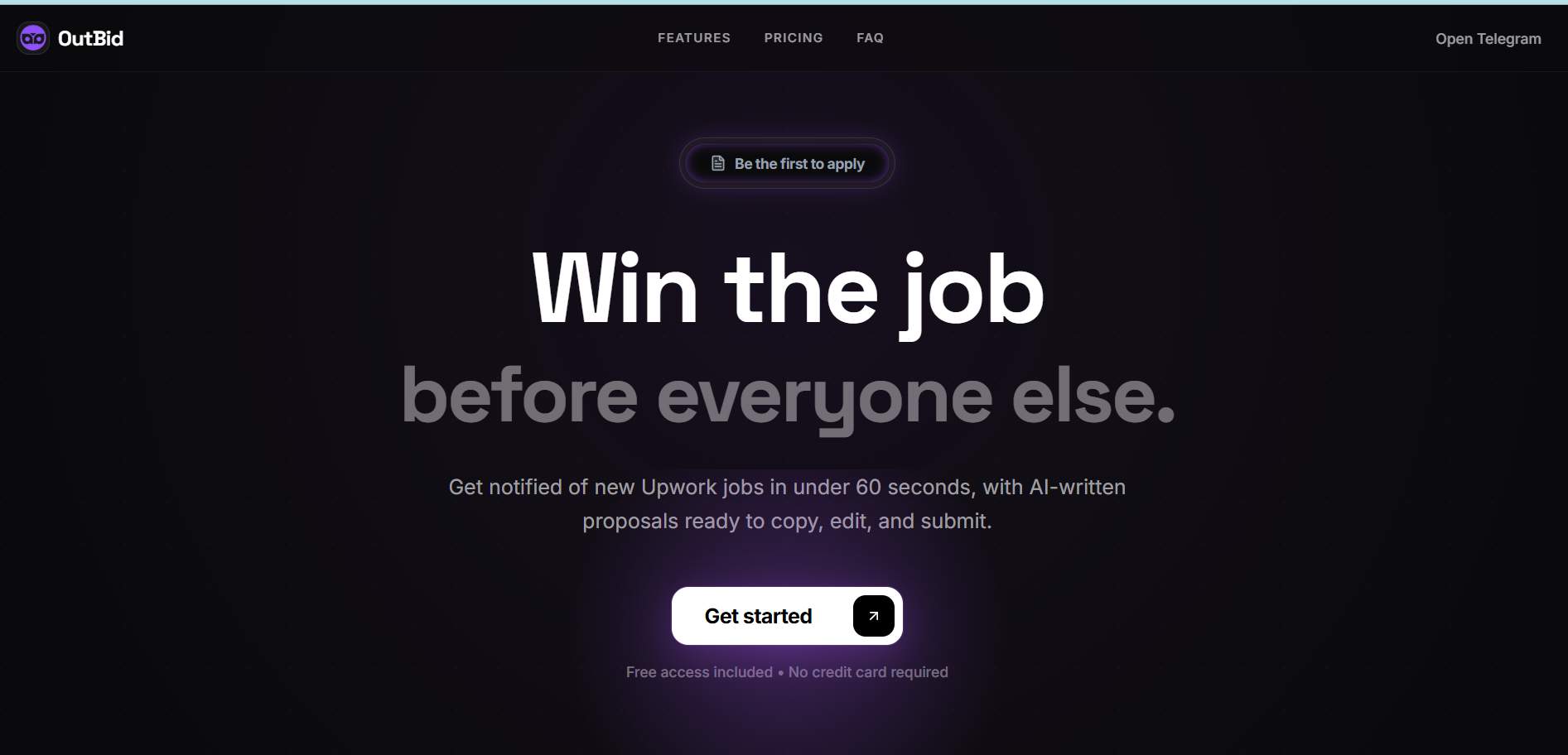 Get Upwork job alerts in 60 seconds with AI proposals via Telegram. Apply first, win more.